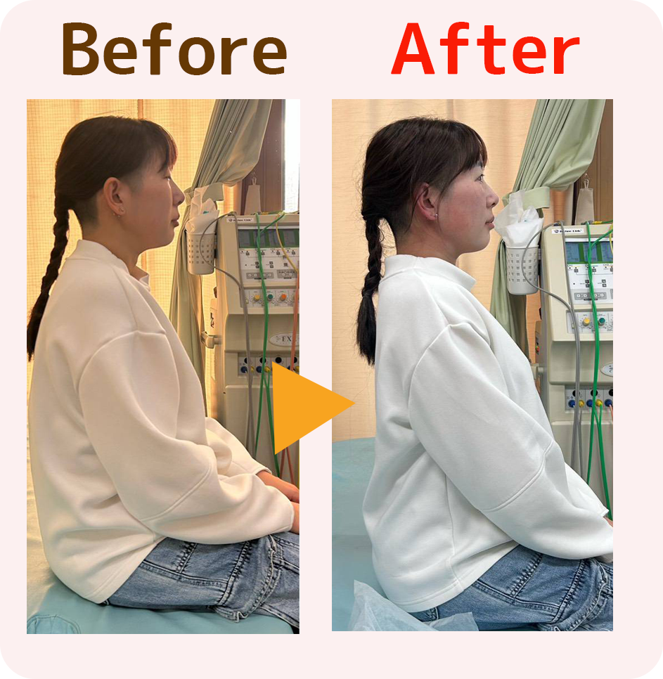 当院の猫背矯正は、骨の音を鳴らしたり、痛みが伴う矯正ではないので安心して受診してください。猫背矯正後ビフォーアフターを見ていただき、現在の患者様の身体の状態に合わせた施術頻度、矯正メニューをご提案させていただきます。