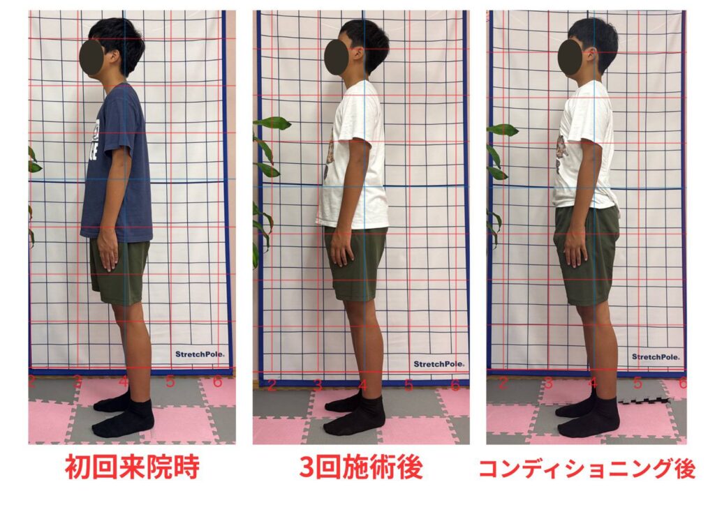 左から初回来院時、3回施術後、コンディショニング1回後となっております